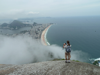 No cume, a 533 metros de altitude, apesar do dia nublado abriram-se esplêndidas vistas da Lagoa, da Pedra da Gávea e das Ilhas Cagarras. Um espetáculo difícil de traduzir em palavras. Enquanto o assistíamos boquiabertos, chegaram dois grupos distintos de turistas estrangeiros que se juntaram a nós na atitude de deslumbramento. Depois ainda apareceu mais uma turma, dessa vez de jovens moradoras do Vidigal. Não gostaram da companhia. Uma delas nos olhou contrafeita e praguejou: “na época do tráfico isso aqui era mais privé”.