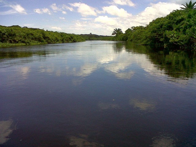 A foto mostra a parte preservada do Rio Itaunas. Na realidade trata-se da Zona de Amortecimento do Parque Estadual de Itaunas, extremo norte do Espírito Santo, que só está com sua biodiversidade relativamente equilibrada graças ao nível de percepção ambiental do proprietário, que preserva (com muita dificuldade)aproximadamente 30 hectares de Restinga, que pertence ao Bioma da Mata atlântica. Mesmo assim na área existe um “passivo”, um antigo lixão, que foi “engolido”, pela natureza que se regenerou, quando a área deixou de ser utilizada para se colocar o lixo da Vila de Itaunas.