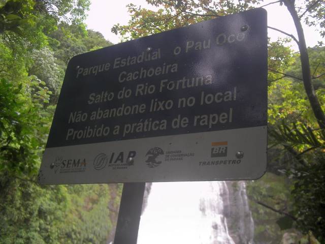 Após o portão que se abriu no município de Morretes, entrei, junto com Carolina Ribeiro, Rodrigo Ribeiro (ambos da Norske Skog Pisa, proprietária da Fazenda Arraial) e um casal de amigos simpático e esportista, na área que está cedida em comodato ao Parque Estadual do Pau Oco. Iniciamos a trilha por volta de 10h da manhã, acompanhados por dois cachorros corajosos que moram junto ao rapaz responsável por receber e orientar os turistas.