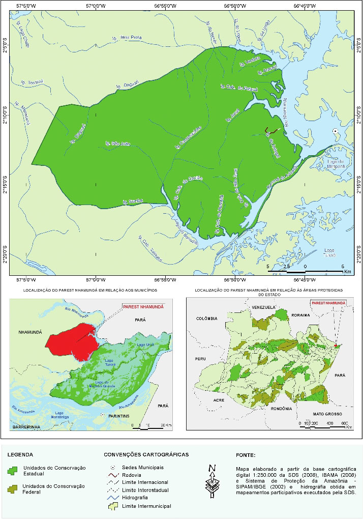 O Parque Estadual Nhamundá foi criado pelo decreto 12.175 de 1989, pelo então governador Amazonino Mendes, em uma área de floresta e campinas, a 360 quilômetros de Manaus. Além de ser uma área com espécies endêmicas, abriga também tabuleiros de reprodução de quelônios.