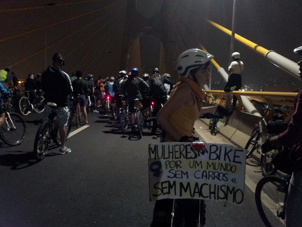 Ontem foi um pouco diferente. Foi uma pedalada rápida, passando por vias expressas como a Avenida 23 de Maio e a Marginal Tietê. Mais rápida até do que a do ano passado, que já cortou vias importantes da cidade. E, ao atravessar avenidas com velocidade, é fácil perder o contato com o entorno, como todo mundo que dirige sabe bem. É fácil ignorar o resto da cidade, o diálogo com o diferente, a tolerância. O que pode ser bem perigoso em movimentos de massa (vide Elias Canetti, Hannah Arendt e outras referências no assunto).