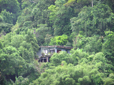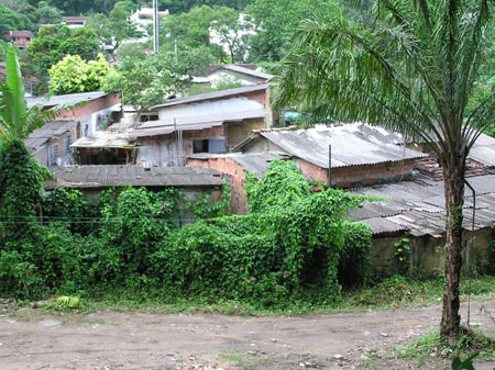 Abertas floresta adentro, estradas de terra conduzem a pequenas vilas onde os terrenos crescem pelo livre arbítrio de cercas e arame farpado e os casebres se sustentam à base de telhas de caixa d’água, tábuas de compensado, tijolos aparentes, lonas e tecidos. O material é trazido pela mata ou escondido nos carros, para driblar a fiscalização nos dois portões de acesso às ocupações. O ambiente estava tranqüilo no dia em que fui conhecê-las. Por todos os lados, só o que se vê é o verde, só o que se ouve é o barulho alto do rio dos Macacos, que corre por ali e mais abaixo cruza o Parque. Encontrei um garoto de 11 anos com uma raquete de tênis na mão. Perguntei se conhecia o rio. “O da cachoeira? Claro!”. Passa bem atrás da casa dele. Para as crianças, conviver com a floresta é uma diversão. “Levo sempre banana para os macacos. Eles vêm comer na minha mão”. Outra moradora não foi tão receptiva. Afirmou “não estar autorizada” a permitir a passagem até o rio, e a conversa se encerrou quando seu cachorro preso começou a se irritar com minha presença.