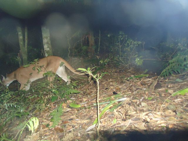 A cada três semanas, a equipe percorre cada trilha para checar as armadilhas e verificar os registros. A onça parda foi registrada já no primeiro período de amostragem. Na última semana o animal, também chamado de suçuarana, foi visto por um servidor atravessando a rodovia BR-116, que cruza o Parque, durante a madrugada.